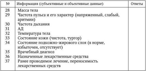 Хотя, повторяем, каждая беседа индивидуальна, имеется ряд общих моментов, которые медсестра выявляет и обязательно регистрирует (табл. 6.1).