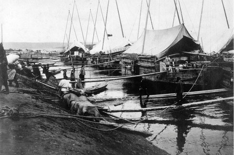 Возросшая коммерческая активность привела к развитию пароходства93. Если в начале XX века речной флот на Лене имел всего 11 пароходов, то в 1917 году он вырос до 38 грузовых пароходов94 и 113 барж95 общей грузоподъёмностью в 21000 тонн96. На них через пристани верхней Лены в Якутию ежегодно ввозились около 3,7 млн пудов грузов. Из этого количества в Якутск прибывало чуть более 1 млн пудов грузов, в то время как остальные оседали на берегах Лены и её притоков. Из мест выгрузки доставленные товары развозились по всей области с установлением зимнего санного пути. В обратный путь пароходы грузились продукцией Якутской области, в основном, рыбой, шкурами, мехами и золотом. С давних времён рыба являлась частью рациона питания якутов и других северных народов, а также широко применялась в качестве главного корма для ездовых собак. В центральной Якутии массовый подледный лов рыбы осуществлялся на озерах. Его продукцию – замороженных карасей – продавали на рынках городов, улусных центров и приисков97.
