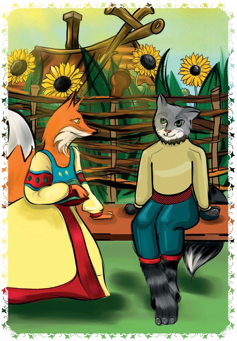 Собралась лисичка-сестричка, взяла пана Котофея под руку, идут. А пан Котофей опять взъерошился, фукает: