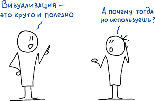 И именно поэтому большинство иллюстраций в этой книге нарисовано мной собственноручно. Любую иллюстрацию вы сможете запросто повторить, даже не умея рисовать. И надеюсь, через такой подход мне удастся вас убедить, что для визуализации важнее понимать, ЧТО рисовать, чем уметь КАК.
