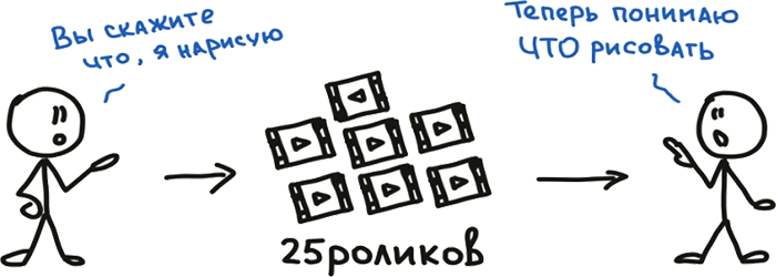 Мы занимается упаковкой смыслов в рисованные ролики. В английском языке этот формат называется видеоскрайбинг. В 2015 году к нам пришёл заказчик, которому за год нужно было сделать 180 видеороликов, и мы стали конструировать цех по упаковке смыслов (серийному производству роликов). Производство ролика в формате видеоскрайбинга можно разбить на два этапа: разработка текста сценария и визуализация сценария. Для этапа визуализации нужно было быстро набрать художников. Нам показалось, что это будет просто. Цена отрисовки понятна из расчёта себестоимости, фрилансеров много, нужно разместить объявления на порталах иллюстраторов и художников. Кого цена устроит, тот будет с нами работать.