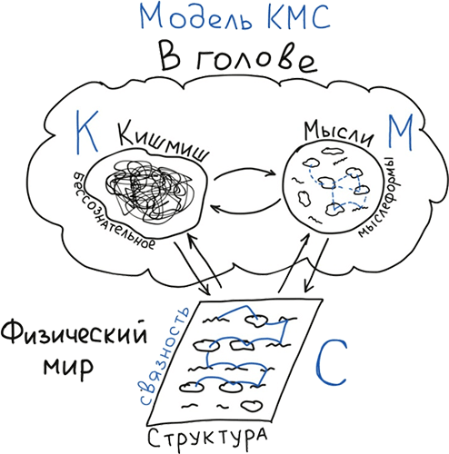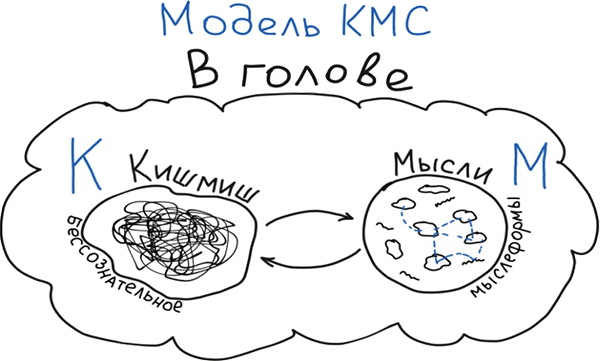 Для объяснения подхода по тренировке визуального мышления давайте рассмотрим описание процесса мышления. Я назвал такую модель описания мышления – КМС (Кишмиш, Мысли, Структура).