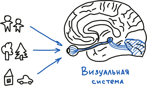 Здесь я сошлюсь на книгу Дэна Роэма «Визуальное мышление». В книге он со ссылками на научные исследования поясняет, как наша визуальная система считывает, распознаёт и анализирует визуальные образы.