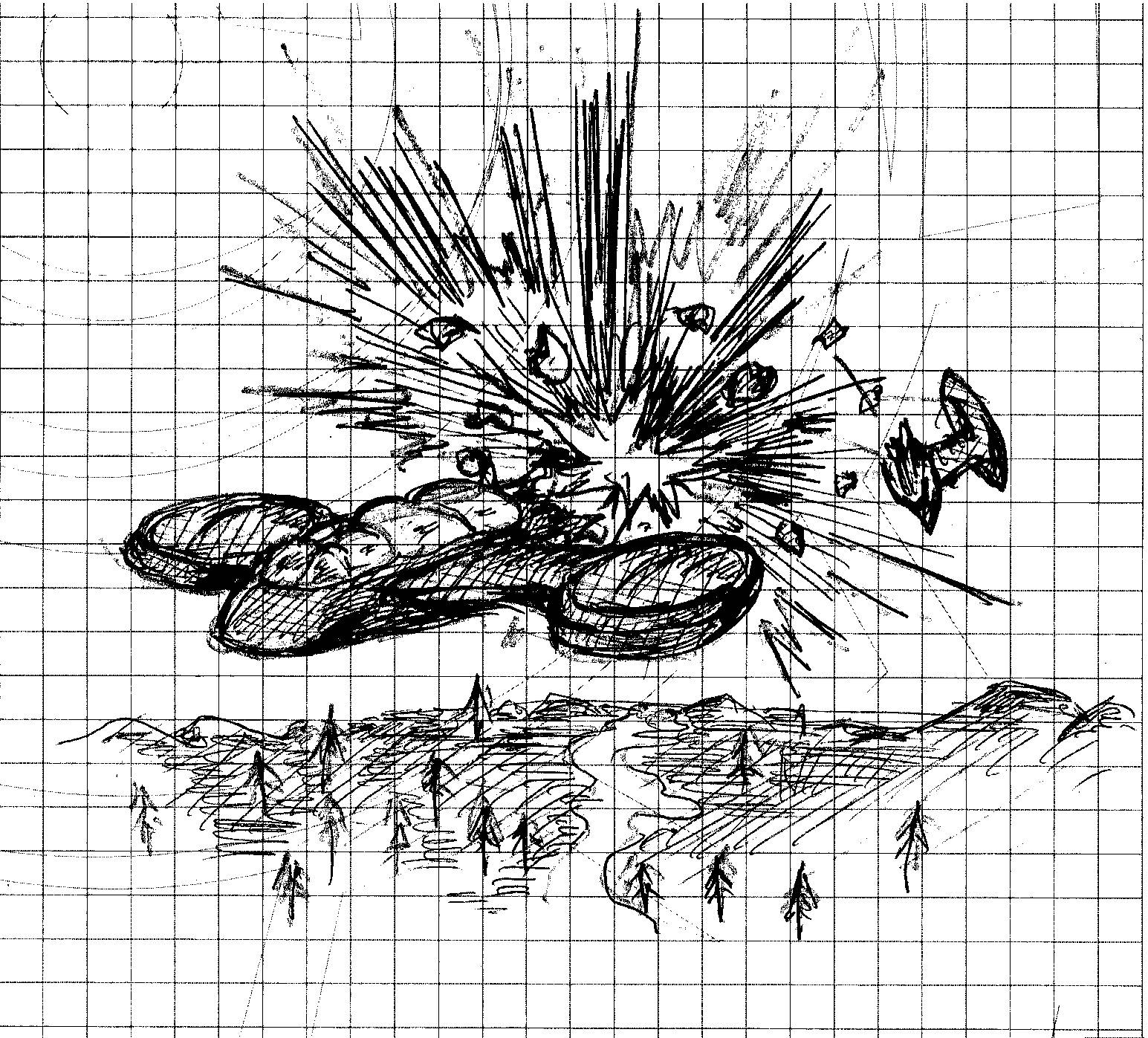 Взрыв оказался настолько мощным, что летательный аппарат вместе с пассажирами разнесло на части. Блоки флайера, непосредственно примыкающие к энергетической системе и двигателям, просто испарилась.