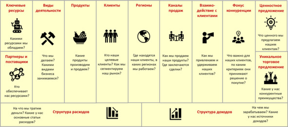 Шаблон Canvas очень удобен и популярен во всем мире. Однако, вместе с тем, он существенно упрощает реальность и не всегда справляется с построением сложных бизнес-моделей. Это выражается, в частности, в том, что данный шаблон не позволяет отображать продуктовые категории и географию бизнеса, а также процесс разработки уникального торгового предложения, т.е. конкурентную стратегию компанию для разных видов деятельности и целевых групп клиентов.