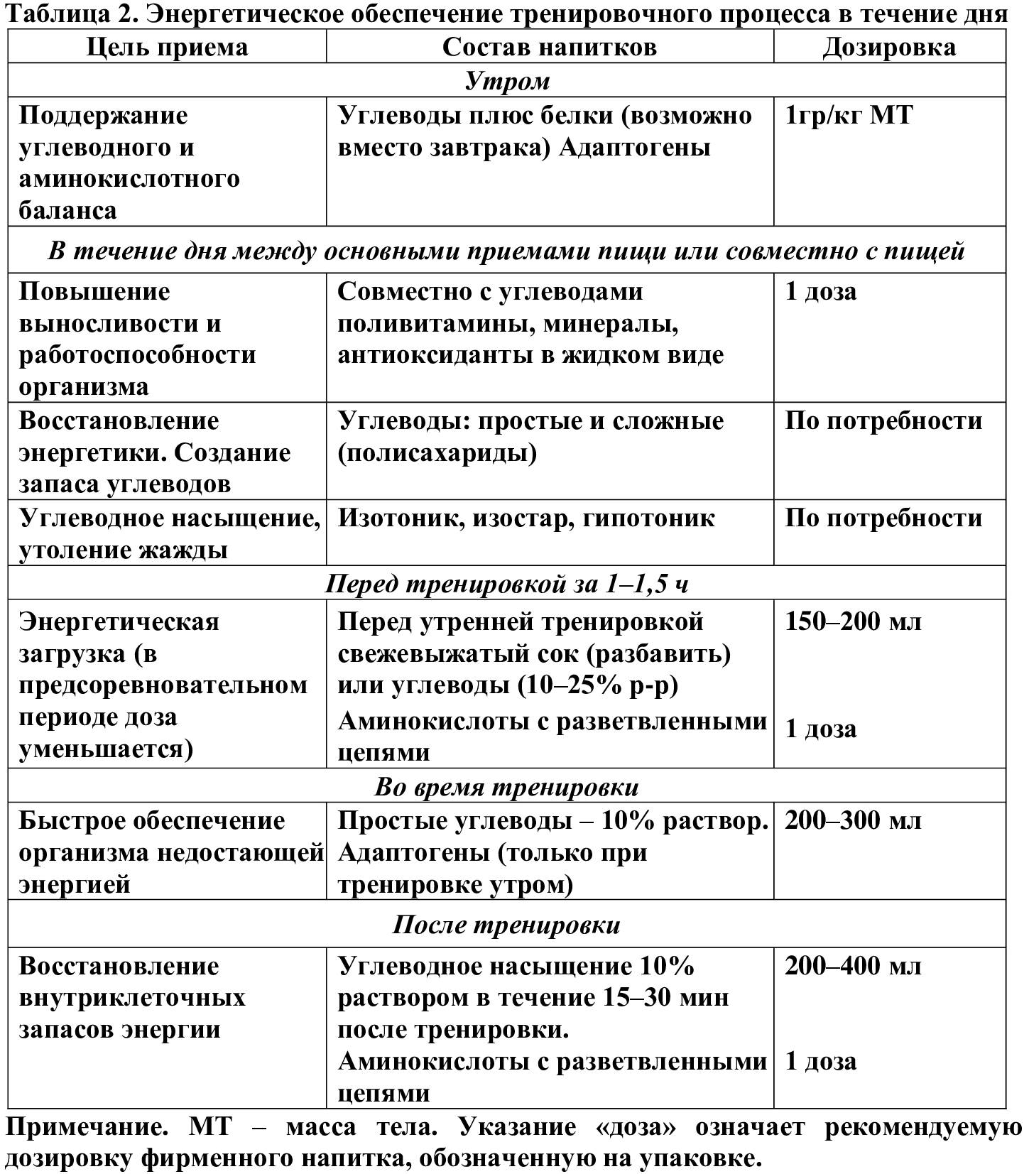 Особенности обменных процессов при различных тренировочных режимах требуют подбора количественных и качественных параметров питания.