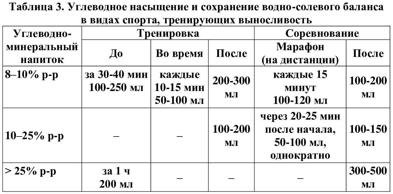 Большое значение имеет процентное содержание таких смесей, т. е. глюкозоэлектролитные растворы с пониженной по отношению к плазме осмолярностью способствуют увеличению скорости насыщения и наоборот. Так, прием 10 % (и менее) раствора глюкозы повышает скорость усвоения жидкости почти вдвое. Потребление 8–10 % раствора в процессе тренировки, соревнования, спортивных игр повышает функциональные возможности организма.
