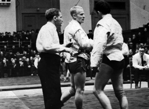 Перед занятиями по борьбе в зале проходили тренировки фехтовальщиков. Часто, приходя пораньше, я разминался вместе с ними, иногда даже немного фехтовал. Потом с первым из тех, кто приходил на тренировку борцов, мы раскладывали маты, я растапливал печку.