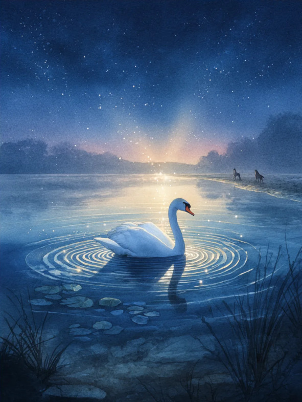 – Лебедь Лира пела, и её голос, как свет, разливался над водой.