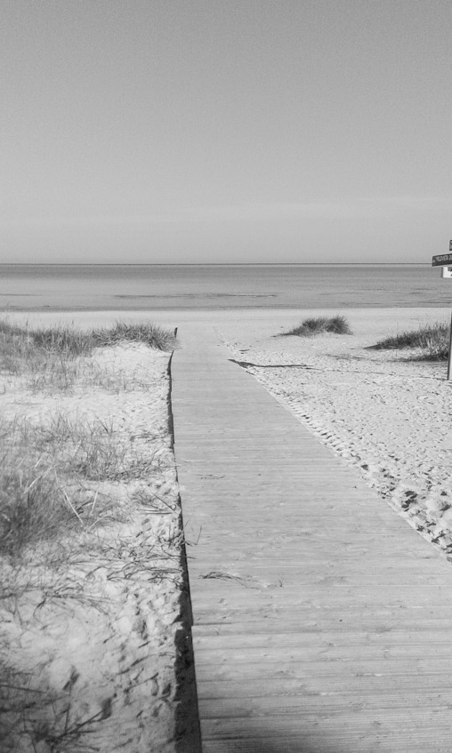 Мне очень нравятся выходить к морю и по-другому – по дорожкам из некрашеных, плотно пригнанных друг к другу досок, своим цветом почти сливающихся с песком. В эти дорожки перерастают узкие улочки, вдоль которых стоят редкие домики и растут сосны.