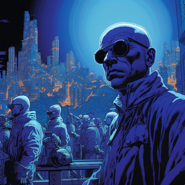 Обосновавшись на Титане, Людоед-старший быстро понял, что если не конвертировать деньги и патенты в боевую мощь, очень быстро его богатство станет источником проблем, а не благ. Но и тут он, не без помощи Доктора Многомозга, проявил свой научный дар и абсолютное безумие. Он не просто нанял армию головорезов – он никогда бы не смог им доверять полностью, и был бы в этом прав. Они с Доктором разработали технологию Синих Очков. Названы они так были из-за внешнего вида – выглядели они и правда, как солнцезащитные очки с сине-зеркальными стеклами. Но на деле это был беспроводной нейрошунт – стоило их кому-либо надеть, они намертво подключались к его мозгу через глазные нервы, а затем по беспроводной связи подключались к оператору, делая носителя его безвольной марионеткой. Любой другой бы сошел с ума от управления целой армией, но Доктор Многомозг мог позволить себе такую нагрузку. Хотя Людоед-старший и получил доминирующий пульт, позволяющий ему мгновенно силой мысли отключить управление Доктора Многомозга в случае предательства со стороны последнего.