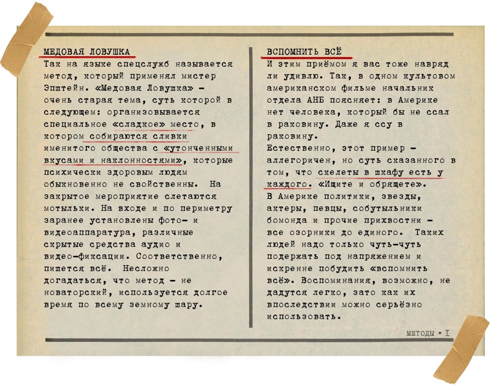 «Вспомнить всё» и «Медовая Ловушка» – да, эти методы известны, но чьи это методы? Разумеется, спецслужб. Один из первых выводов, к которому мы приходим: подобного рода созданием рычага для заполучения куша занимаются спецслужбы, но только не государственные спецслужбы, а частные. Провернуть такую операцию, как с Тайсоном, могла только спецслужба. Группа людей, сидящих в офисе и страстно жмущих на клавиши ПК, проделать такую операцию просто не способны. Прежде всего «простые смертные» не знакомы с тактикой работы специальных служб, а значит, они не способны даже разработать план и выстроить тактическую конфигурацию операции по ограблению Тайсона.