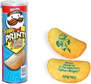 Идея напечатать что-нибудь на чипсах пришла в голову одному из сотрудников Procter & Gamble, искавших способ сделать чипсы источником веселья для потребителей. Кто-то предложил печатать анекдоты и фотографии поп-исполнителей, и, несмотря на то что идею сочли фантастической, она была записана и запала в души. Более того, после мозгового штурма один из участников попробовал реализовать задуманное с помощью офисного струйного принтера.