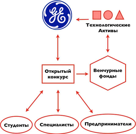 Одной из лучших практик в проведении открытых конкурсов является конкурс Ecomagination от General Electric. Целью конкурса было стимулирование идей в области альтернативной энергетики и распределительных сетей следующего поколения и организация бизнеса на их основе. Понимая, что собственных ресурсов для работы с большим потоком проектов на ранних стадиях у компании не хватит, GE сформировала вокруг себя пул венчурных инвесторов, готовых вложить в общей сложности 200 млн долларов в реализацию проектов.
