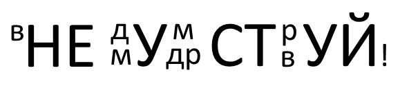 В тексте книги имеются анаграммы, которые показаны одной строкой в виде текста из заглавных и строчных букв. Причем строчные (маленькие буквы) могут быть как вверху, так и внизу. Строчные буквы, которые расположены в верхней части строки, относятся к первой строке анаграммы. Строчные буквы, расположенные в нижней части строки, относятся ко второй строке анаграммы. Заглавные буквы относятся к обеим строкам анаграммы: и первой, и второй.