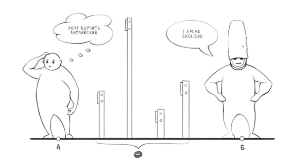Часто носитель русского языка не может надеть роль американца, потому что это кажется противоестественным. На английском даже высота тембра другая и вообще мышцы по-другому работают. Вы можете быть настолько отождествлены со своей привычной «русской» ролью, что вам трудно с себя ее снять и стать американцем. Возникает ощущение потери себя. Вам кажется, что вы неуместны или как-то неадекватно выглядит. Если у вас был когда-то случай, где вы пытались заговорить с иностранцем, наверняка вам это знакомо. Вы начинаете говорить и чувствуете, что выглядите как-то глупо и странно, что другой это замечает, возможно смеется над вами где-то в глубине души. Это все очень неприятно и также может быть существенным барьером при изучении языка.