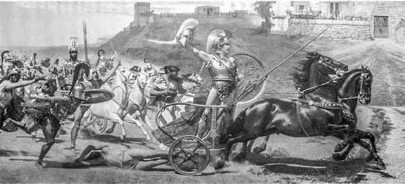 Counting on an immediate victory was a mistake, though, as the Trojans avidly defended their city tooth and nail, refusing to surrender the abducted queen. The siege of this city continued for nine years, with no side able to gain the upper hand. However, in the tenth year Achilles and Agamemnon had a row, and that became the turning point in the course of this war. During one of the raids to a suburb of Troy Agamemnon captured the daughter of the priest Chryses. The grieving father asked the King to release his daughter taken hostage, and having been refused, he pleaded with Apollo to curse the Greek army with pestilence, which Apollo did. The terrible illness took down the Achaeans, and Achilles on behalf of the public demanded that their leader returned Chryseis to her father. Chryses gathered his darling, and Agamemnon received Achilles’ prisoner Briseis for compensation. Achilles felt hurt, got angry and refused to participate in battles. He asked Zeus to take revenge upon Agamemnon for this loss by allowing the Trojans to score military success. Zeus met his request, and the Trojans led by King Priam’s son Hector managed to make their way to the Greek vessels and to start a small fire there. Patroclus, the best and only friend of Achilles, engaged in battle with Hector and was killed. Broken hearted, Achilles put aside all his pointless and minor villainous acts and went for revenge. Having taken out thousands of Trojans on his way, he forced his way towards Hector, challenged him to fight and killed him in view of Priam, watching the combat from the fortress walls. Then he tied the opponent’s body to a chariot and dragged it three times around the fortress walls.