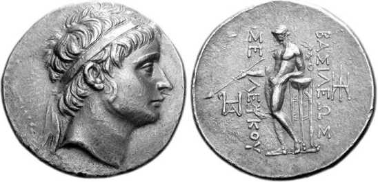 Тетрадрахма Селевка II (244–226 гг. до н. э., Антиохия). На реверсе – Аполлон Дельфийский с золотой стрелой в руке