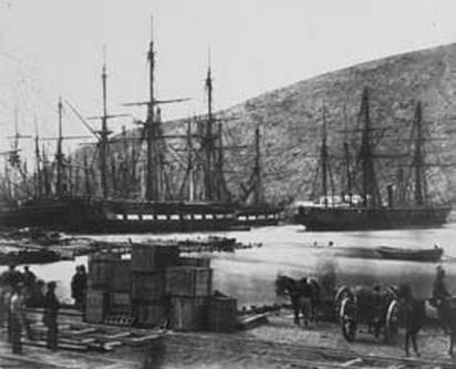 Балаклавская бухта. Фотография Роджера Фентона (1856 г.) На переднем плане – построенная англичанами железная дорога
