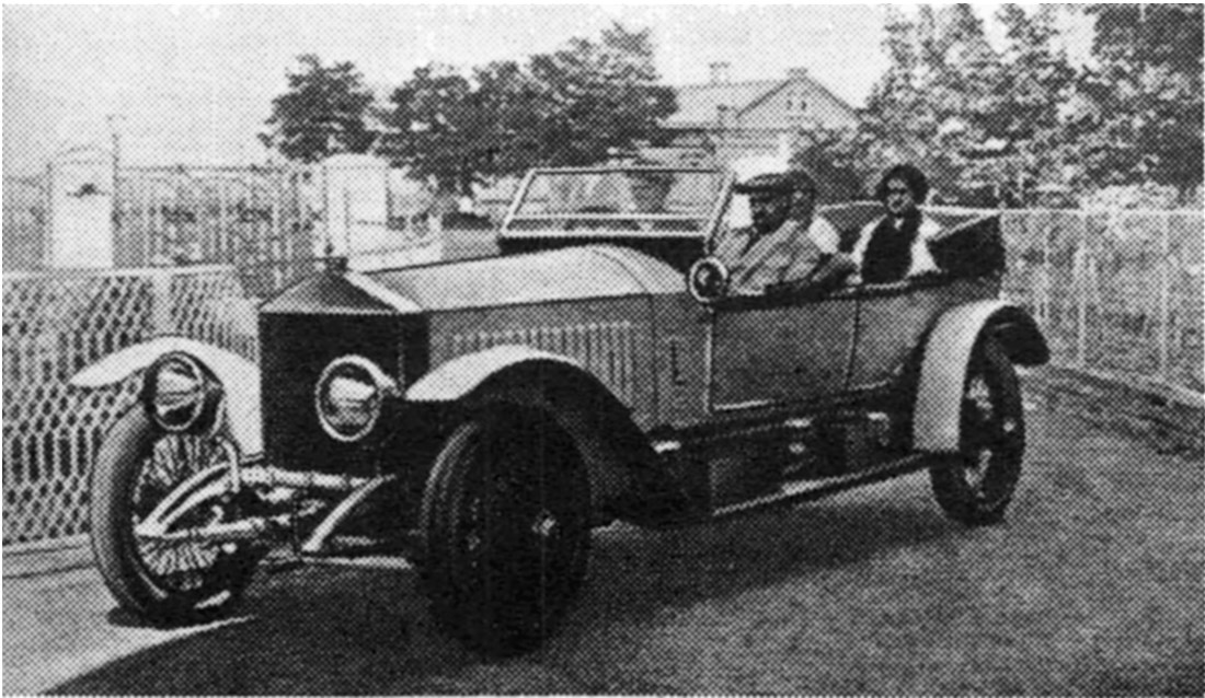 «Роллс-ройс» дяди Солженицына Романа Щербака (в 1910 г. таких машин на всю Россию было всего девять). На заднем сиденье его жена Ирина и сестра Таисия – будущая мать Солженицына