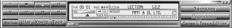 На панели есть ползунок для прокрутки видеоурока, индикатор текущего положения и регулятор громкости. На ней также показывается время работы с системой в течение одного сеанса.