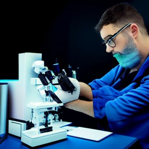 Ученый у микроскопа (ИИ Kandinsky 2.0)