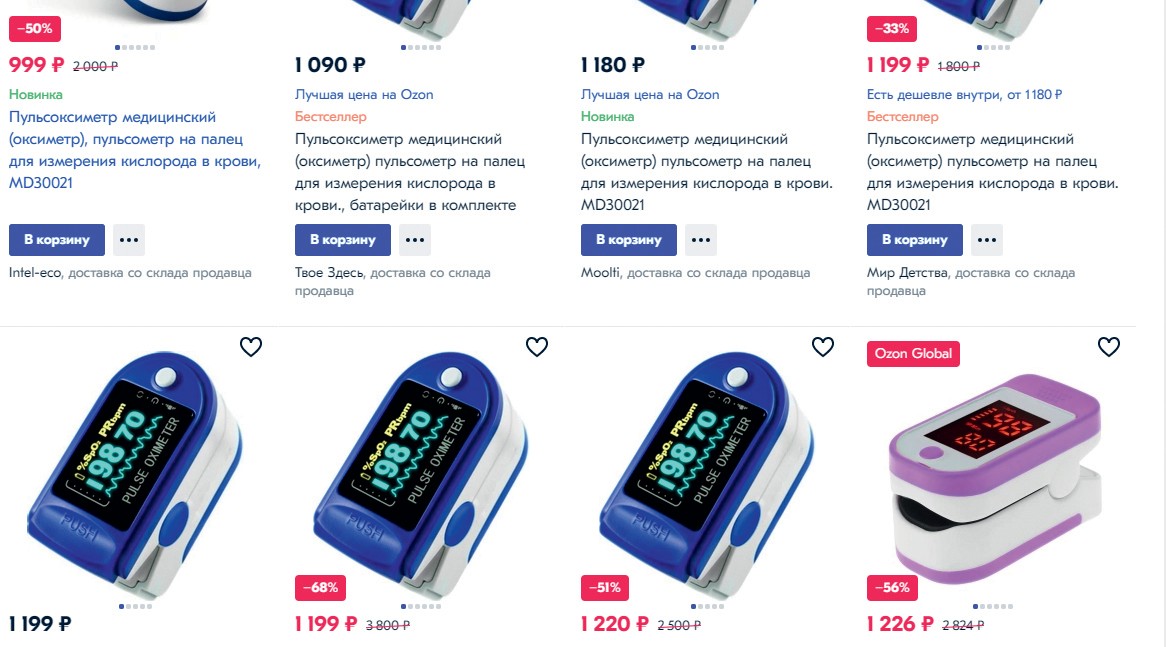 Рассмотрим пример. В период пандемии коронавируса появилось много товаров, необходимых из-за специфики распространения, течения и лечения COVID-19. Одним из таких товаров стал измеритель пульса и уровня кислорода в крови. В самом начале пандемии на популярном маркетплейсе было всего 3–5 продавцов таких приборов, а стоимость измерителя доходила до 5000 рублей и даже выше.