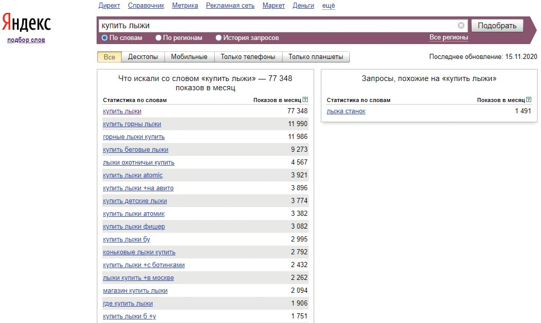 лом по России и миру. То есть сколько раз в месяц пользователи интернета вводят те или иные слова для поиска. Слова, имеющие отношение именно к вашей продукции или услугам.