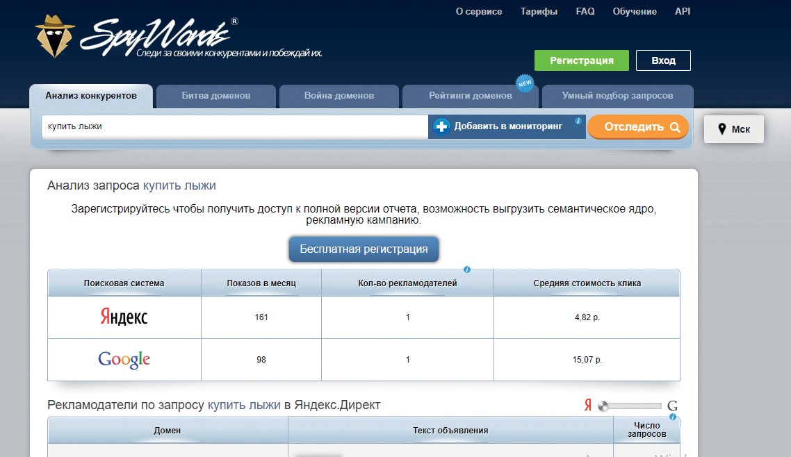 Рис. 6. Сервис анализа конкурентов SpyWords