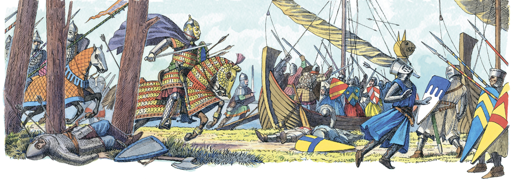 Так оно и вышло. Александр Ярославич ещё не успел прорваться к шатру, чтобы схватиться в поединке с самим Биргером, а на берегу уже зазвенели мечи.