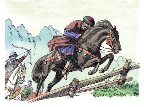 Но всё дальше и дальше уходил от всадников гонец. Ускакал. Хороша была под ним лошадь.