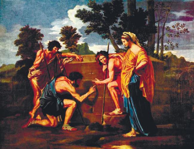 Аркадия в греческой мифологии – страна абсолютного счастья. Безмятежные пастухи на лоне прекрасной природы однажды нашли гробницу, на которой прочитали надпись: «Я тоже жил в Аркадии». Художник мастерски передает эмоциональную реакцию каждого из них. Античный сюжет, уравновешенная композиция, сдержанный колорит, четкий, как на античном рельефе, рисунок, скульптурная выразительность поз позволяют считать эту картину шедевром французского классицизма XVII в. Однако все эти черты подчинены центральной барочной идее: “memento mori”.