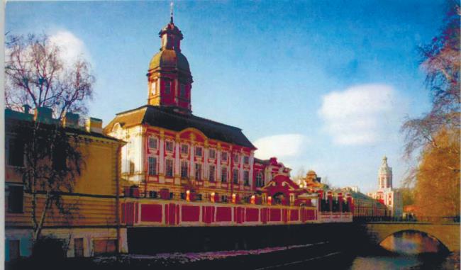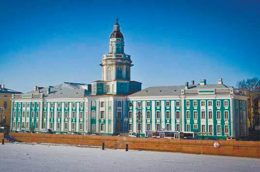 Кунсткамера — библиотека, обсерватория, с 1725 г. – Академия наук, задумывалась как первый в русской истории общественный музей. Первоначально он размещался в Кикиных палатах, конфискованных у владельца, казненного по делу царевича Алексея. Для популяризации музея Петр I велел каждому посетителю наливать чарку вина или водки. Здание Кунсткамеры строилось долго, с 1718 по 1734 г. Начал строительство немец Георг Маттарнови, но через год он трагически погиб. Его нечаянно столкнул с лесов пьяный рабочий. Преемником Маттарнови стал Николаус Гербель. При нем работы шли ни шатко, ни валко. После смерти Гербеля (1724 г.) его сменил талантливый итальянец Гаэтано Киавери, но, к сожалению, ненадолго. Через два года он отпросился за границу по служебным надобностям и больше не вернулся. Он предпочел службу при дворе Августа II и вошел в историю европейского искусства как создатель великолепных барочных сооружений в Варшаве и Дрездене. Завершил строительство Кунсткамеры и отделку ее интерьеров Михаил Земцов.