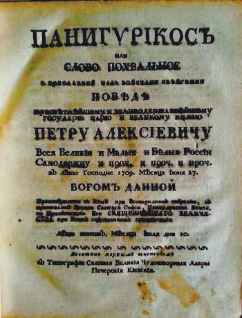 Вершиной ораторского искусства является «Слово на погребение Петра Великого», произнесенное Прокоповичем 8 марта 1725 г. в недостроенном Петропавловском соборе. Спустя шесть дней оно было издано в петербургской типографии, а затем, переведенное на латинский, французский, шведский и немецкий языки – в Париже, Ревеле, Гамбурге и Стокгольме. Прокопович говорит о тяжести утраты путем сравнения Петра Великого с библейскими героями: «Се оный твой, Россие, Сампсон… Застал он в тебе силу слабую и сделал по имени своему каменную, адамантову; застал воинство в дому вредное, в поле не крепкое, от супостат ругаемое, и ввел отечеству полезное, врагом страшное, всюду громкое и славное <…>