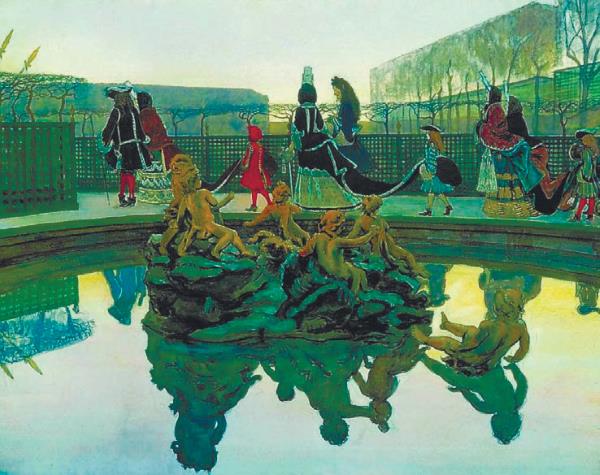 Начало ХХ в. ознаменовалось всплеском интереса к петровскому Петербургу. Отчасти это было связано с подготовкой и проведением торжеств по поводу 200-летия города. Тема петровского Петербурга нашла отражение в творчестве живописцев «Мира искусства». Идеолог этого объединения художественный критик, историк искусств, живописец и график Александр Николаевич Бенуа (1870–1960) всю жизнь вдохновлялся образами Петергофа, Павловска, Ораниенбаума. Для него это был эталон «стильности», «настроения истории», «эпошистости». В сравнении с видами Версаля времен Людовика ХIV – второй излюбленной темой Бенуа, они показывают место петровского Петербурга в контексте европейской культуры. Сам художник расценивал эти произведения как призыв к эстетической реабилитации города XVIII в. и называл «историческим сентиментализмом». В большинстве его «петербургских версалей» нет фигур, авторское внимание приковано к природе и памятникам, а исторические реминисценции лишены событийности. Объектом художественного исследования являются не императоры и их деяния, а город в его исторической конкретике.