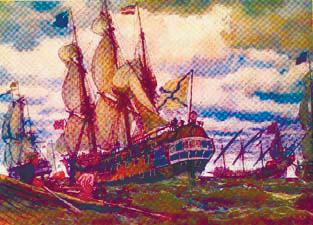 Лансере Е. Е. Корабли времен Петра I. 1909. Х., темпера. ГРМ