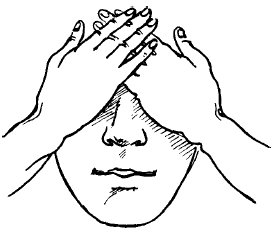 Человеку, который заслоняет свет ладонями, предлагаю занять свой разум воспоминаниями приятных сцен из его прошлой жизни. Но вспоминая, нужно быть осторожным, чтобы избежать чего-либо похожего на «умственное вглядывание». Фиксируясь на каком-либо образе, можно легко вызвать ответную фиксацию и неподвижность глаз. В этом нет ничего удивительного и непостижимого с точки зрения целостности человеческого организма. Чтобы избежать «умственного вглядывания» необходимо всегда, когда глаза прикрыты ладонями, вспоминать объекты и образы в движении. Поэтому своим пациентам я рекомендую представлять картины в динамике.