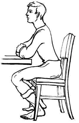 Положите локти на колени или на стол так, чтобы шея образовала прямую линию с позвоночником. Можно также положить на колени подушку, а на подушку – локти.