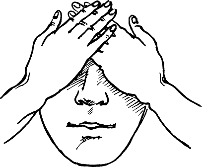 Человеку, который заслоняет свет ладонями, предлагаю занять свой разум воспоминаниями приятных сцен из его прошлой жизни. Но вспоминая, нужно быть осторожным, чтобы избежать чего-либо похожего на «умственное вглядывание». Фиксируясь на каком-либо образе, можно легко вызвать ответную фиксацию и неподвижность глаз. В этом нет ничего удивительного и непостижимого с точки зрения целостности человеческого организма. Чтобы избежать «умственного вглядывания» необходимо всегда, когда глаза прикрыты ладонями, вспоминать объекты и образы в движении. Поэтому своим пациентам я рекомендую представлять картины в динамике.