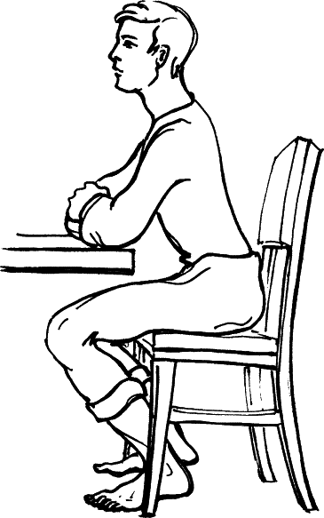 Положите локти на колени или на стол так, чтобы шея образовала прямую линию с позвоночником. Можно также положить на колени подушку, а на подушку – локти.