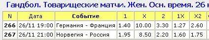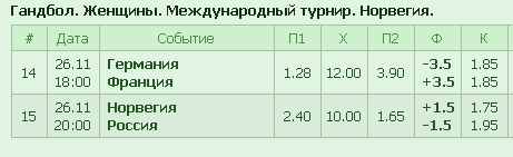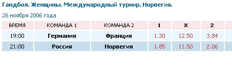 Рассмотрим следующий реальный пример. Матч по гандболу Россия – Норвегия.