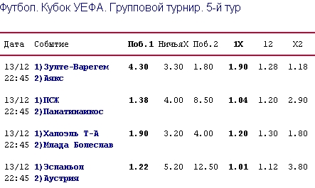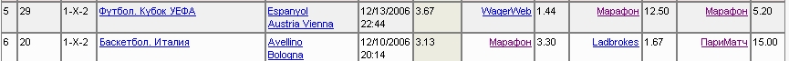 Отсюда видно, что если это коэффициенты одной конторы, то маржа ее составляет более 50%, что практически исключено. И, значит, что если маржа конторы на линии 1-X-2 менее 50%, то одна из пар 1-2, 1-X или 2-X обязательно образует неполную вилку. Даже на линиях одной конторы. Для практических целей надо искать неполные вилки с максимальным процентом, комбинируя линии всех контор.