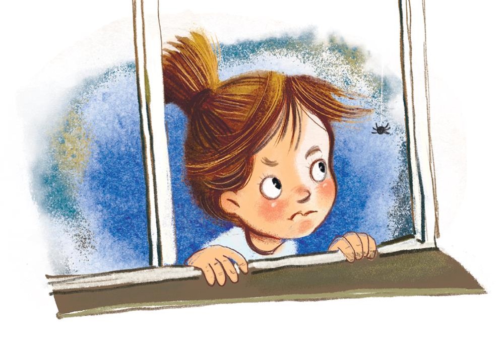 Маша выглянула в окно. Вдруг она увидела, что прямо за стеклом на тоненькой ниточке спускается Паучок.