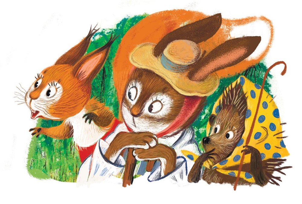 Услышали его тонкий голосок Зайчиха, Белка и Ежиха и вышли на полянку.