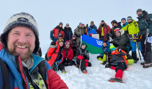 Фото. Команда Югры на вершине горы Нёр-Ойка. Февраль 2023 г.