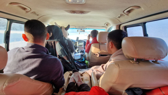 Пять экипажей путешественников постепенно собирались возле поста ГИБДД на выезде из Ханты-Мансийска в сторону Нягани. Как и договаривались, в 6 утра, 21 февраля 2023 г., у поста встретились 4-ре экипажа на «Хтрайле», «Хайлендере», «Крузере» и «Старексе». В ожидании пятого экипажа на «Мазда СХ5», который в этот момент встречал в аэропорту Ханты-Мансийска одного из своих пассажиров – фотографа и видеооператора Кирила, возвращавшегося авиарейсом из Индии, мы стали живо осматривать и обсуждать автомобиль Ильдара и Анатолия – большой и красивый автобус Хендай Старекс. Добротный и просторный автомобиль, удобный как для водителя, так и для своих пассажиров. В салоне в мягких кожаных креслах удобно разместились Евгения, Светлана, Радик и Тарас. У автора, конечно, промелькнула мимолетом мысль – на месте парней в этой машине с девушками должен был быть я – но я ее быстро прогнал, а может и не быстро.