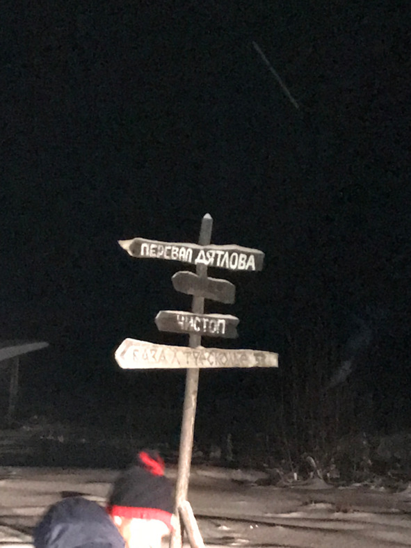 В поселке Вижай установлен памятник группе Дятлова с фотографиями членов группы и указатель направления к перевалу Дятлова, где мы сделали первые в этом походе групповые и одиночные фотографии на фоне указателя к перевалу.