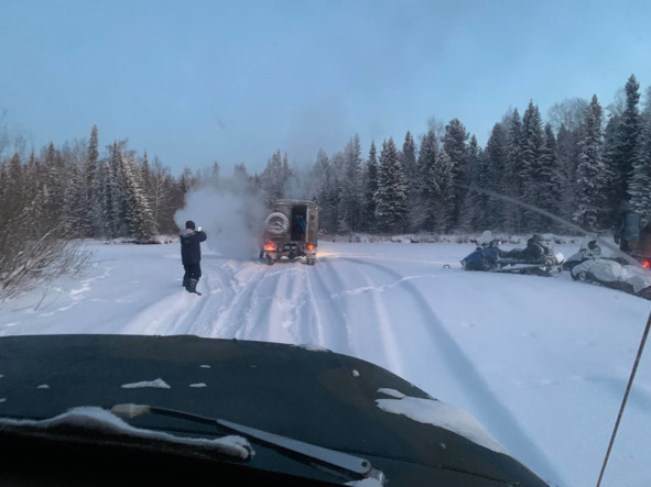 Погрузив лыжи в сани снегоходов, а рюкзаки в походные автомобили Газ 66 и Зил 131 мы в 08.00 двинулись в 8-ми часовой автомобильный путь к точке старта пешего маршрута – Базе Ильича, находящейся в 25 км от перевала Дятлова и в 60 км от поселка Вижай.