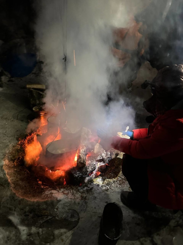 Пока мы занимались бытом – ужин был готов и скажу честно – это был самый вкусный суп из говяжьей тушёнки, что я ел!!! Горячая жидкость супа приятно разливала теплоту по всему телу и согревала те места тела, которые находились от окружающего нас мороза в стрессе.