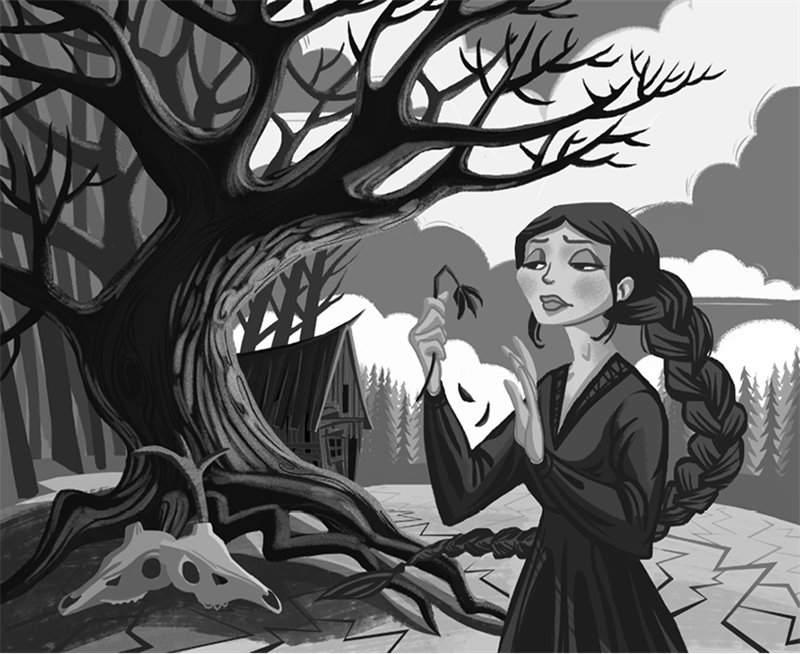 И так и этак пробовала ведьма улестить дуб, а тот ни в какую. Молчит старый пень! Уж она ему и страшные жертвы приносила, и корни свежей кровью младенцев поливала, и молилась ему, и просила, и умоляла – всё без толку. Тогда решила колдунья дуб напугать. Принесла из похода к людскому жилищу очередную жертву – связанную красивую девушку, положила её рядом с корнями и стала собирать сухой хворост. Дуб, почуяв неладное, заскрипел и закачал ветвями. Ведьма бросила свою жертву на огромную кучу хвороста, достала огниво и присела рядом.